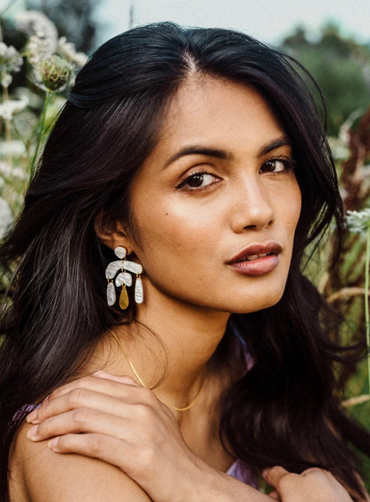 Pepper You - Statement Snowdrop Flower Earrings in Pearly White