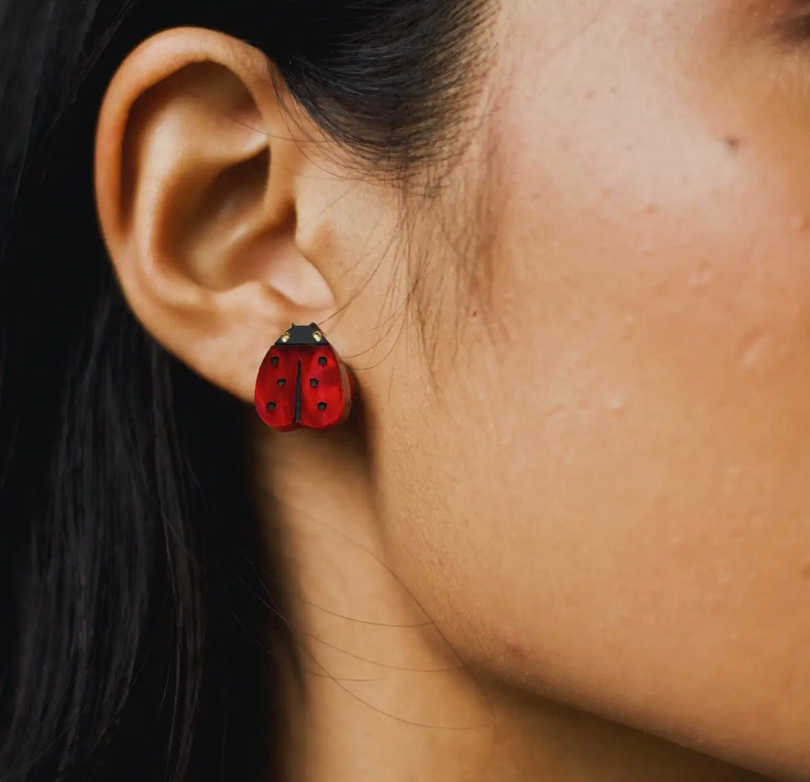 Each pair of these cute bright red garden lady bug earrings is thoughtfully designed by me in my studio and then laser cut in Brighton and assembled with such care and attention to detail.