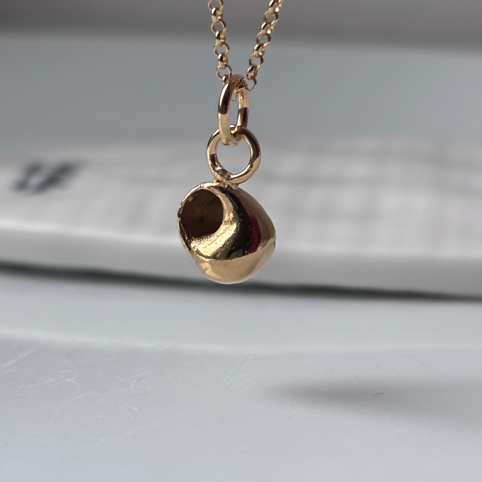 I found this tiny little shell during lockdown and I’ve had it cast in silver. This version has been plated with 1.5 microns of 24ct gold.