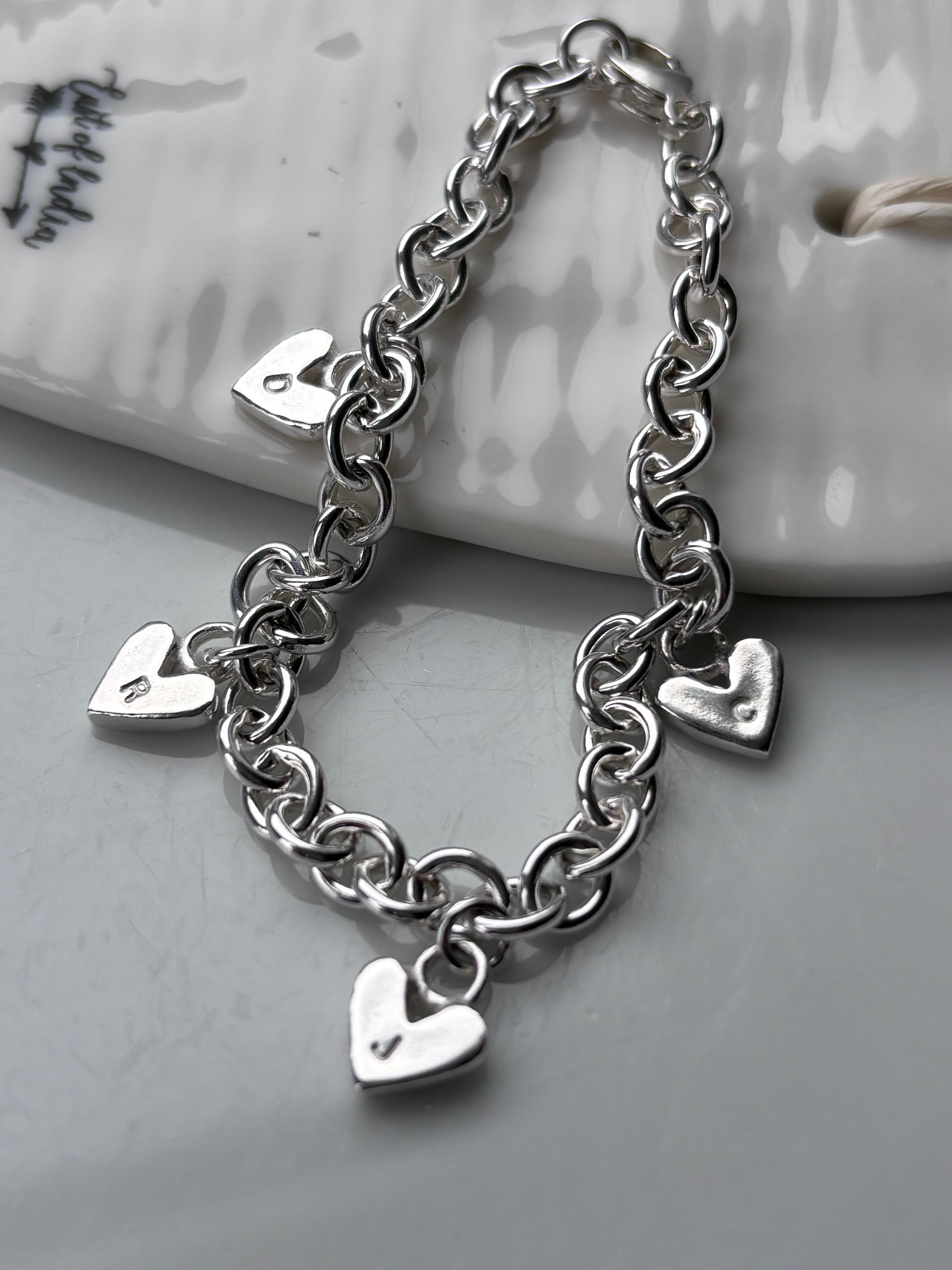 Silver heart charm bracelet.